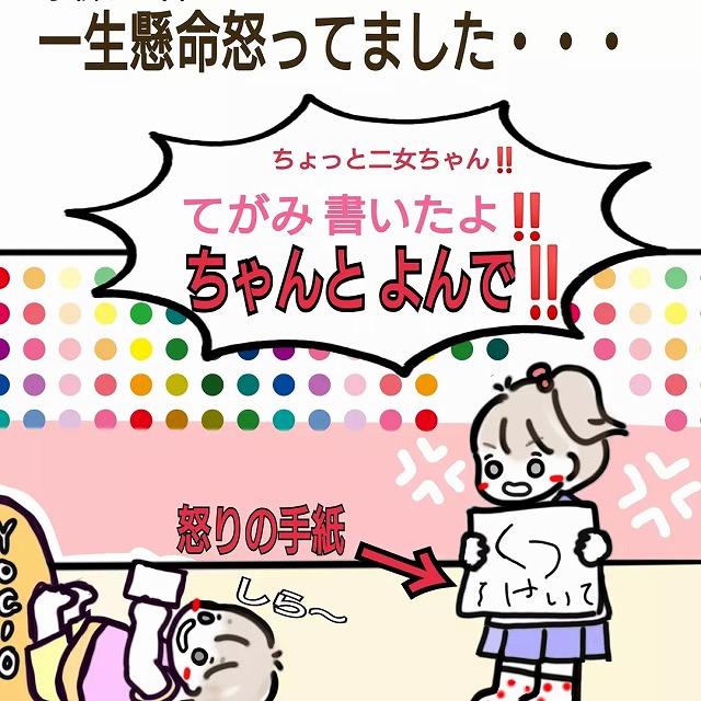言っても聞かない二女に、手紙を書いて一生懸命怒っている様子が可愛かったです。