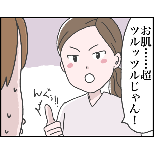 赤ちゃんをナースステーションに預け二日ぶりのシャワーを浴びたしおさん。シャワーの後に忘れ物を取りに部屋に行くと、看護師さんに「シャワーが終わったらすぐにナースステーションに来て赤ちゃんを引き取ってください!」と怒られてしまい落ち込みます。その後、気を取り直してご褒美のフェイシャルエステを受けたしおさんは、その直後にまたしても看護師さんに呼び止められ「今度はなに!?」とビクビク・・・。