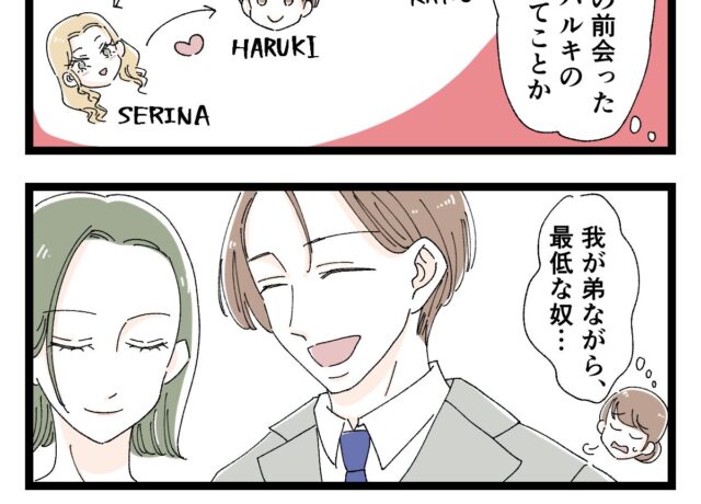 ラブラブだったのに、手のひら返しで浮気相手を突き飛ばすサイテー弟 ハルキとセリナの関係について、全てをサクラコに話した私に、「気にしないで」と言った後、結婚はないかなとキッパリ。その後、「出張を1日早めて帰るからハルキの […]