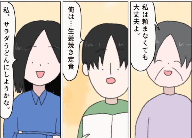 「母さんと外食に行くのも恥ずかしいって思ってるのか?」そりゃ思ってるよ 一緒に外食に行っても、何も頼まず水だけ飲んで過ごす義母にハラハラして疲れてしまう私。別の日、ヒロユキに外食に行こうと誘われるも、すかさず「テイクアウ […]