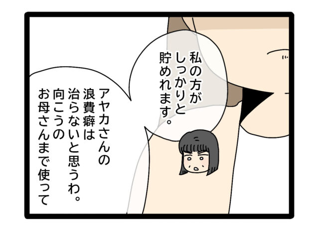 夫のお金は義母管理[5]やっと家に帰っても消えないモヤモヤ 「じゃ、アヤカに旅費もらったら、また届に来るわー」そう言って家を出たコウタさん。 すると、「あら、今度のお給料日の時でいいわよ~」と義母が。「そう?ってことだか […]