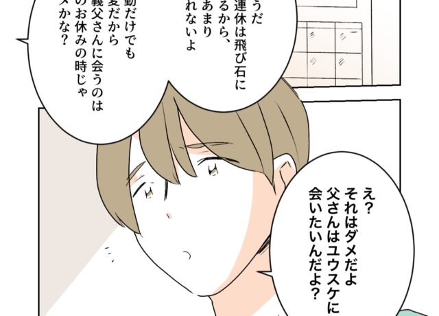 義父の連絡先を知っているのは義祖母のみ 「父さんの家に1泊してもいいと思う」突然泊まると言い出したショウタに反論するも、「今からユウスケと二人で泊まる」と言い出すショウタに、「イヤイヤイヤ無理だってば!」と強く言うと、や […]