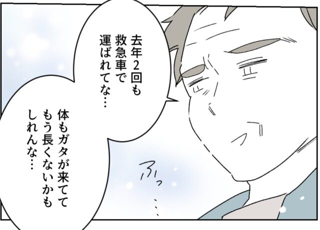 「もう長くないかも」嘘くさい義父の話を信じる夫にビックリ ショウタと一緒に義父に会いに行くと、義父は初対面の私を「コレ」呼ばわりしたり、全身をじろじろ見て「出てるところは出てるし」と品定めするように言ったりで正直ゾッとし […]
