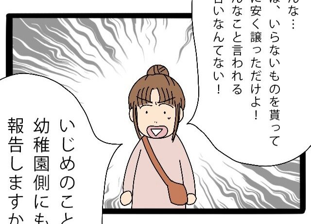 マイホームの購入資金を貯めていただけなのに・・・なんで怒るの? 私は、そらがいじめられていると園長先生に訴えようとしますが、返ってきたのは「お母さんに苦情が入っています、おさがりの交渉や販売をやめてください」という思いも […]