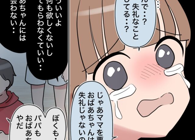 「断る?そんな選択肢はないでしょ?」義母の圧が強すぎる 私をかばったサッちゃんは落ち込んでベッドに。「もうおばあちゃんの家に行きたくないしパパとも話したくない」とサッちゃん。その後、エイタとも話して二人が同じ気持ちだと理 […]