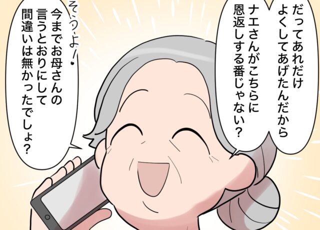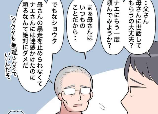 自己中心的な考えが日に日に強くなっていく義母。疲弊していく夫 義母の意向ばかりを汲んで私や子ども達の気持ちをずっと蔑ろにしてきたショウタ。今になって義両親のサポートを頼まれても到底手伝う気にはなれず、ショウタは一人でサポ […]