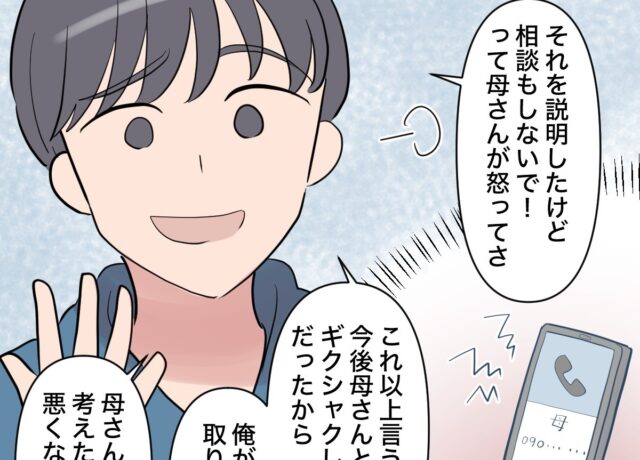 「息子は私が守る」悩んだ末に2人目を妊娠そして出産。 「義母からのプレゼントはいらない」と私が言ったと言いつけたショウタに、「これでいらない物が増えないね~」と言うと、「いいの?印象悪くなるよ?」と脅された私。「これでス […]