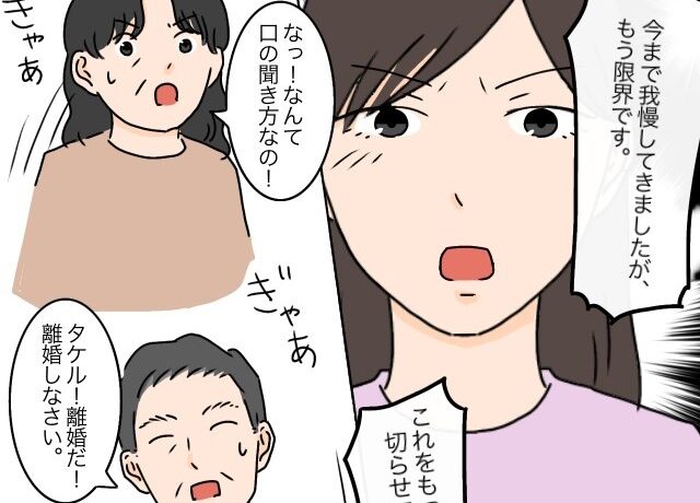 「奥さんと娘を守らないでなにやってんだよ?」夫には何も通じない ミウさんのご両親にあーだこーだと私の悪口を言い続ける義父母を見て慌てるセイジさん。でもタケルは相変わらずキョトンとしているだけ。ミウさんのご両親は「苦労され […]
