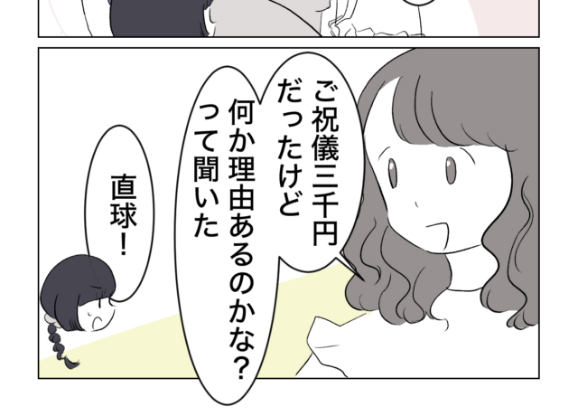 [13]ギリギリを攻める女|花嫁が直球質問「ご祝儀3千円に理由ある?」お金に困ってるのかと心配された