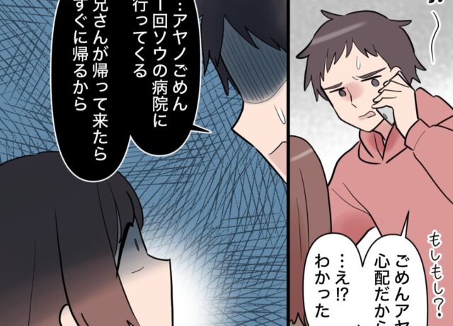 妊娠中のアヤノさんは、頻繁に義実家へ帰省する夫のトモヤさんに不満を抱えていました。つわりがひどくて思うように動けず、唯一食べられるものはアイスだけ。頼みの綱であるトモヤさんにアイスを買って帰るよう頼むも、4時間もほったらかしされ頭を抱えます。実はトモヤさんは、出張で不在がちな兄ナオキさんの代わりに、その妻であるキョウカさんのサポート役として義実家へ駆り出されていたのでした。
