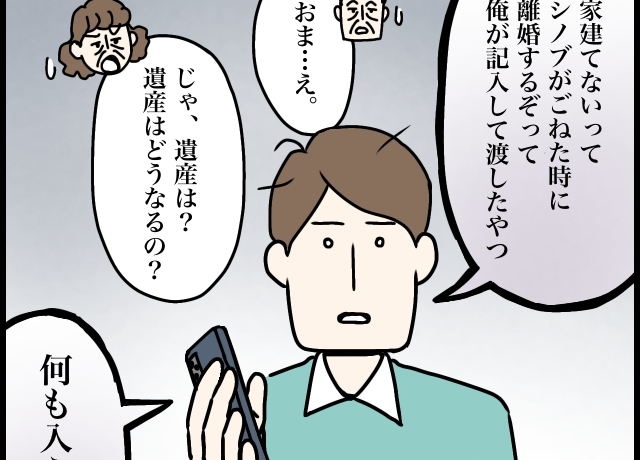 [16]夫家族と遺産トラブル|強気の離婚届を逆手に取られ狼狽し再婚を迫るお金しか考えていない元夫。