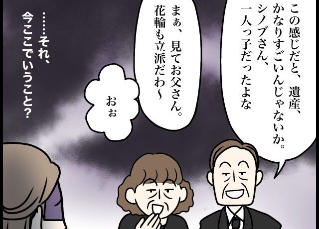 [2]夫家族と遺産トラブル|亡き父を偲ぶ葬儀で「祭壇も花輪も立派」と遺産を期待しニヤケ顔の義両親