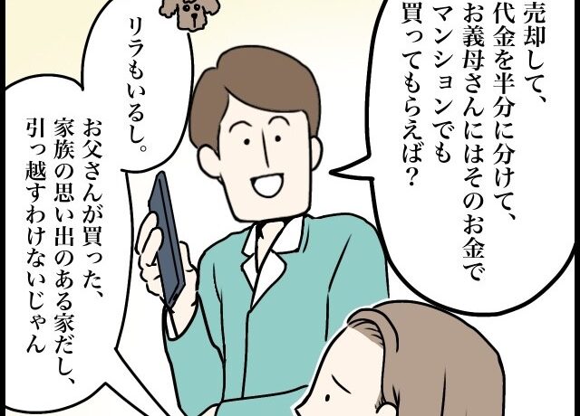 [6]夫家族と遺産トラブル|妻の実家を売却し代金を半分得ようと提案する夫。拒否する妻に「もらわないと損」