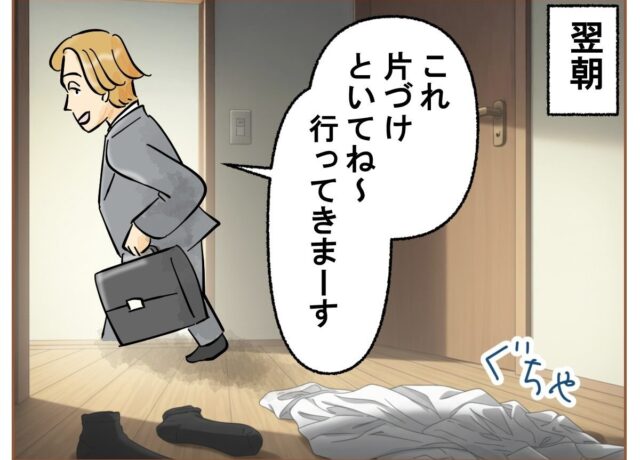 [5]夫の嫌いなところ|帰宅のたびに玄関からリビングまで順に脱ぎ捨てる洗濯物。翌朝ひと言「片付けといて」