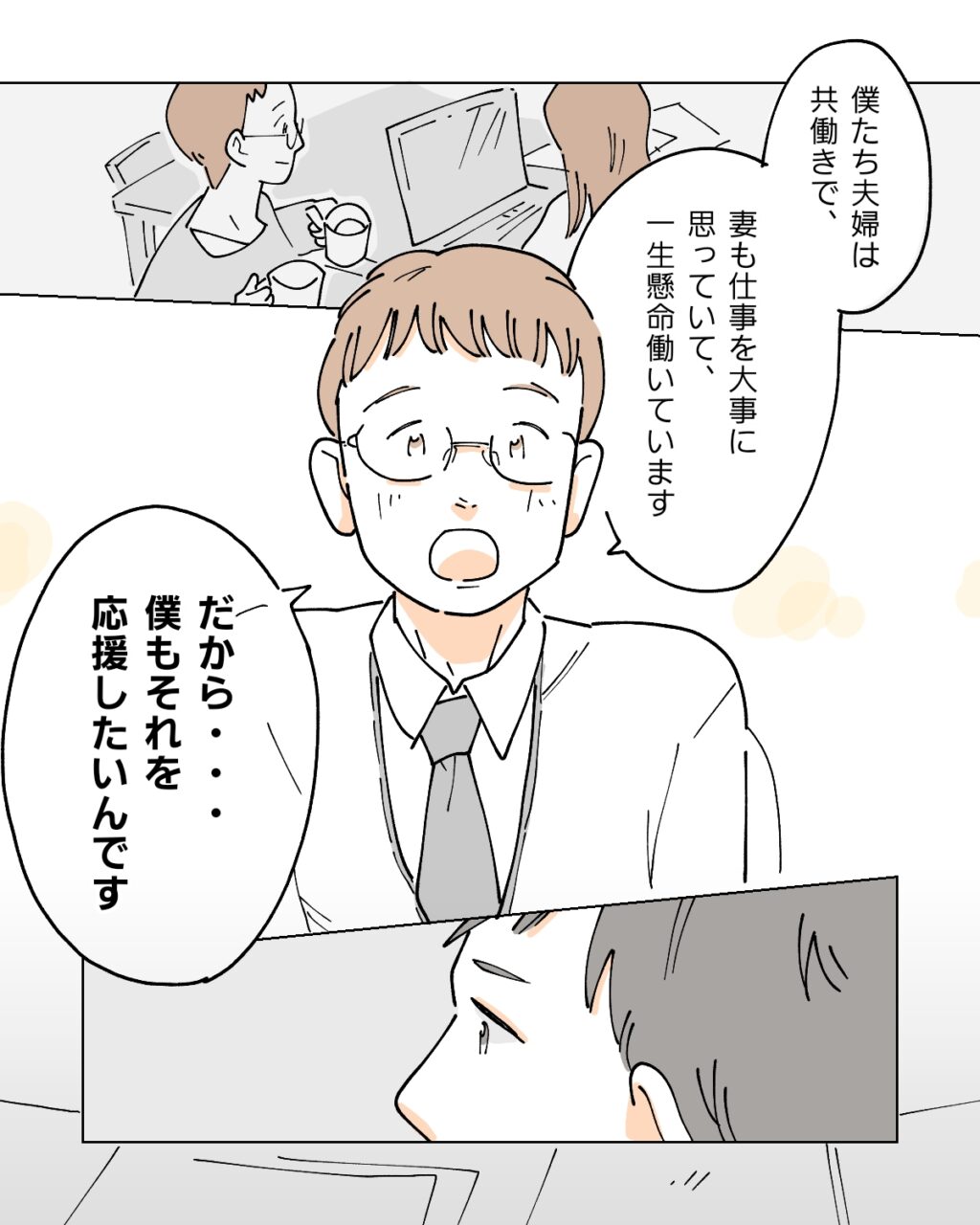 「僕たち夫婦は共働きで、妻も仕事を大事に思っていて、一生懸命働いています。だから・・僕もそれを応援したいんです」と真っ直ぐな目で伝えてきた部下。