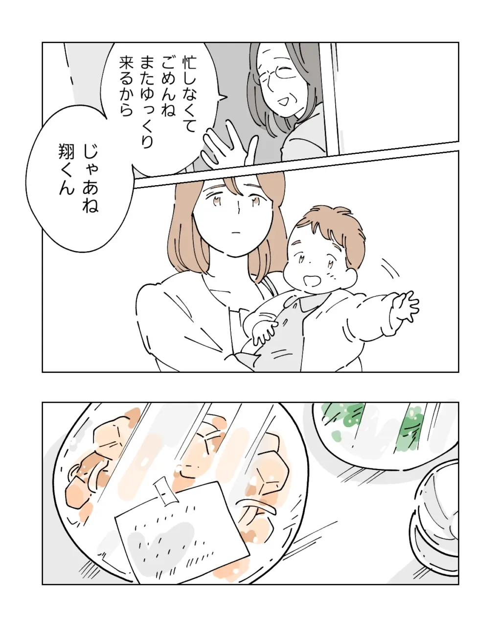 無理を言っていることは重々承知の上で、それでも頼まざるを得ないちひろさん。仕事も中途半端、他の社員へ負担になっている。お母さんは快く引き受けてくれますが、ちひろさんは罪悪感でいっぱいです。お互いに仕事をしていて、翔くんの親という立場はちひろさんも良平さんも同じはず。ちひろさんがこんなに苦しい思いをしながら働いていることを良平さんにももう少しわかってほしいです。
