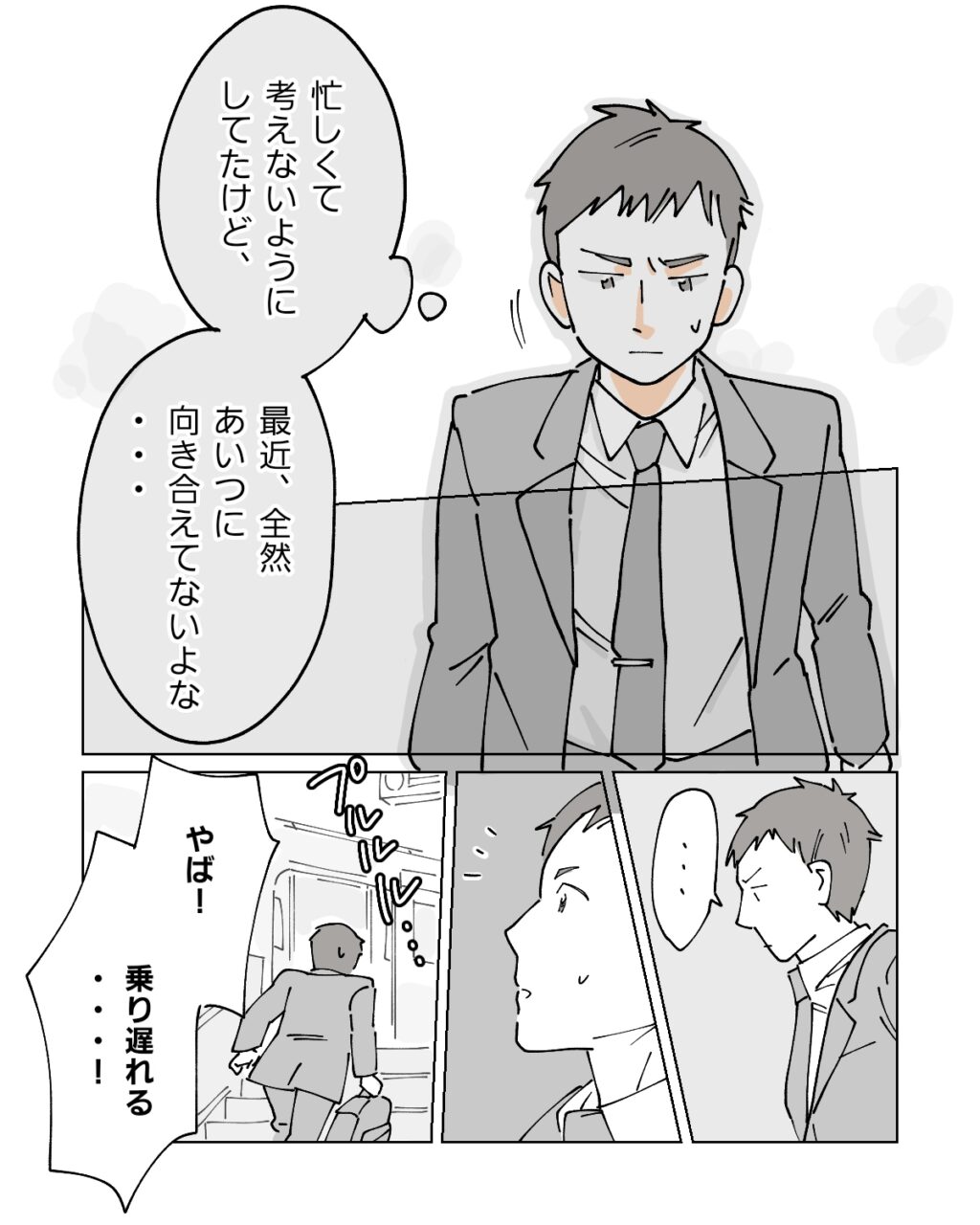 「忙しくて考えないようにしてたけど、最近、全然あいつに向き合えてないよな・・・」このままじゃいけない。仕事を言い訳にせず、夫としても父親としても、もっとちひろを支える必要があると思いました。・・・でも今はとりあえず仕事仕事!俺は急いで電車に飛び乗りました。