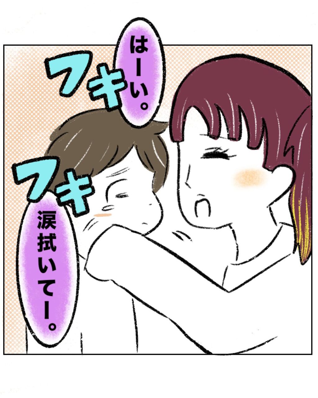 そして、「はーい。涙拭いてー」と笑顔で言いながら自分の服の袖でまーくんの涙を拭うと、
