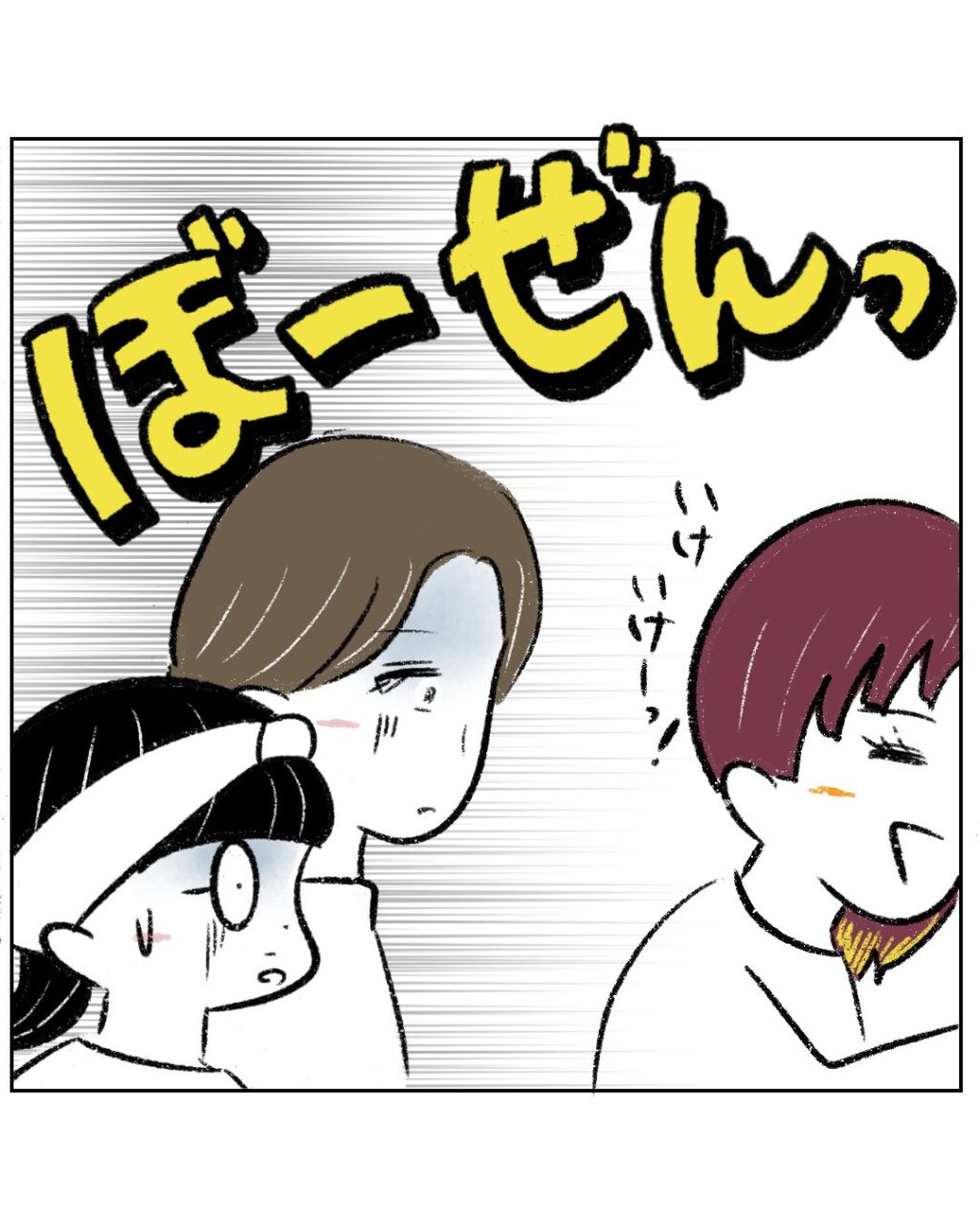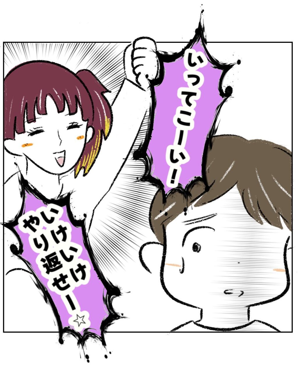 しかし、つーくんママは困惑するまーくんにお構いなしに「いってこーい!いけいけやり返せー!」とまーくんを焚きつけます。