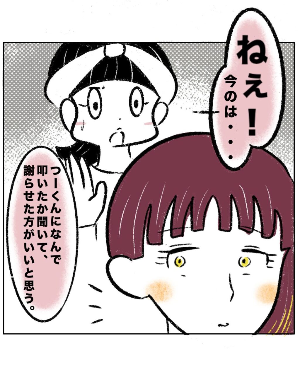 つーくんママには、まずはお友達を叩いてしまったつーくんを注意してほしいですよね。