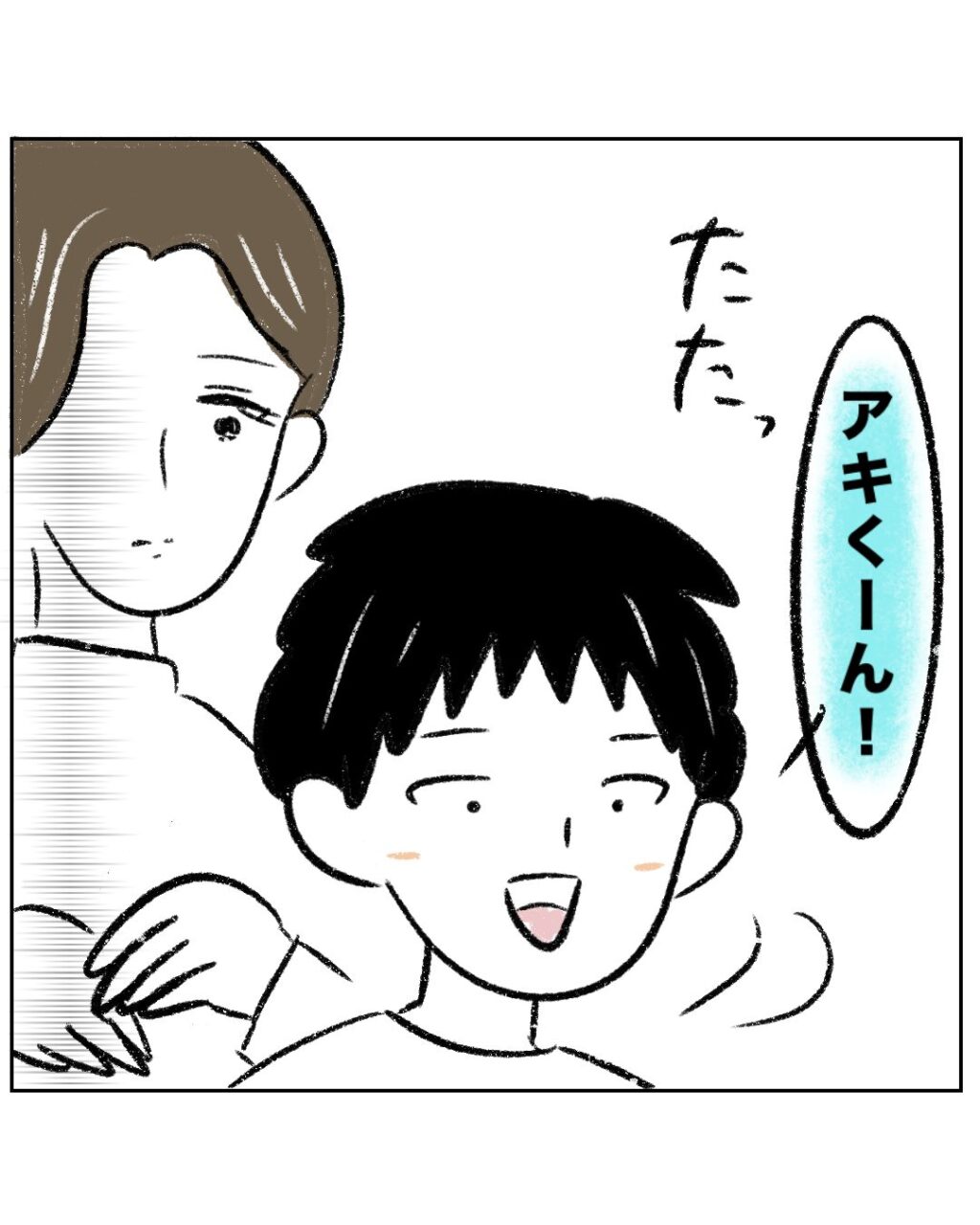 すぐにくるりと向き直り、「アキくーん!」と言いながら何事もなかったかのように笑顔で走り出しました。