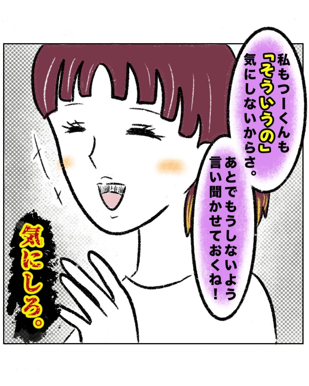 そして「私もつーくんも『そういうの』気にしないからさ。後でもうしないよう言い聞かせておくね!」と笑いながら言うつーくんママを見て、まるさんは「気にしろ」と心の中で激しく突っ込みました。