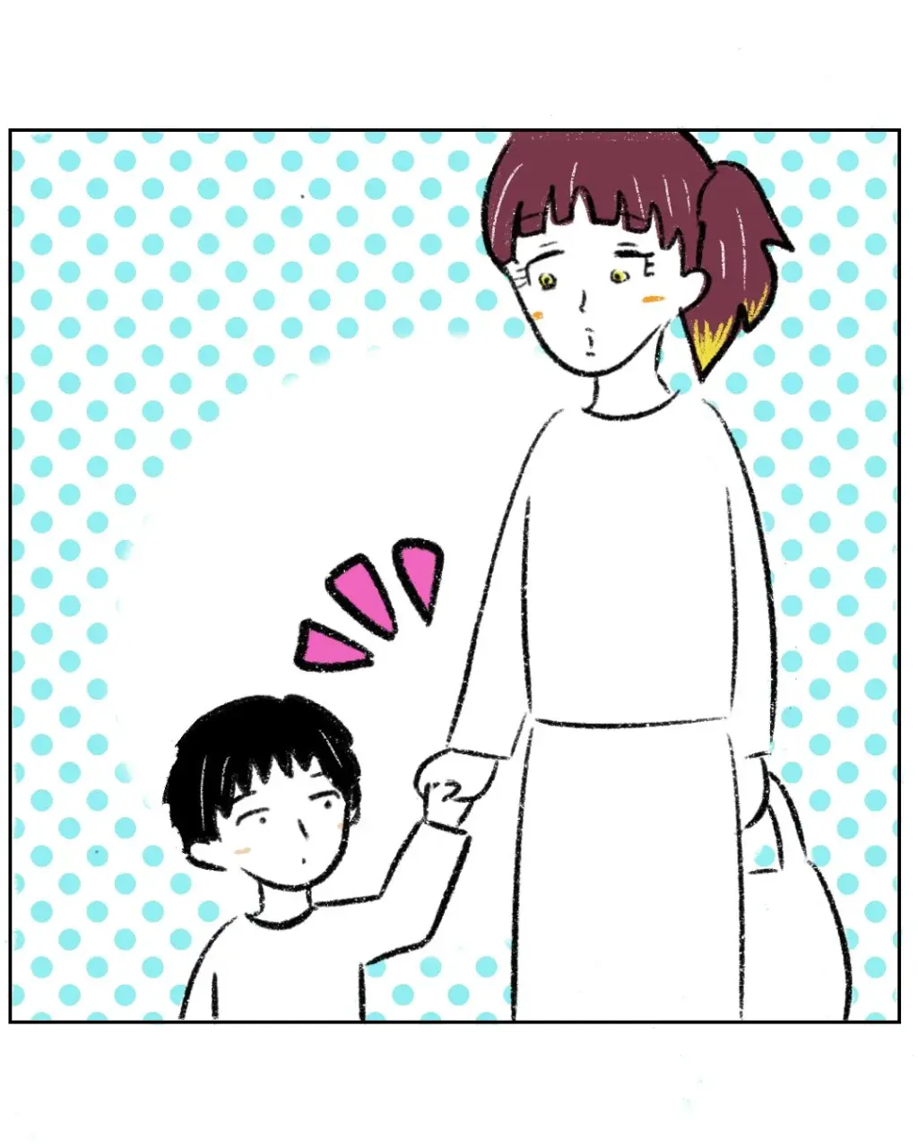 まるさんに注意されて素直に手を繋いでくれたつーくんにホッとしましたが、つーくんママにはまるさんの心配が全く伝わっていないようですね。