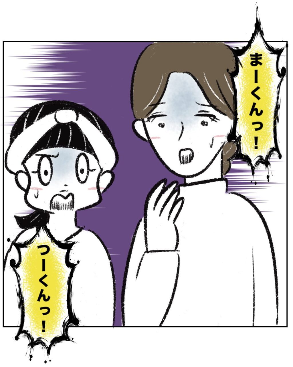 「まーくんっ!」とまーくんママが声を掛けるのと同時に、「つーくんっ!」とまるさんが大きな声で呼びました。