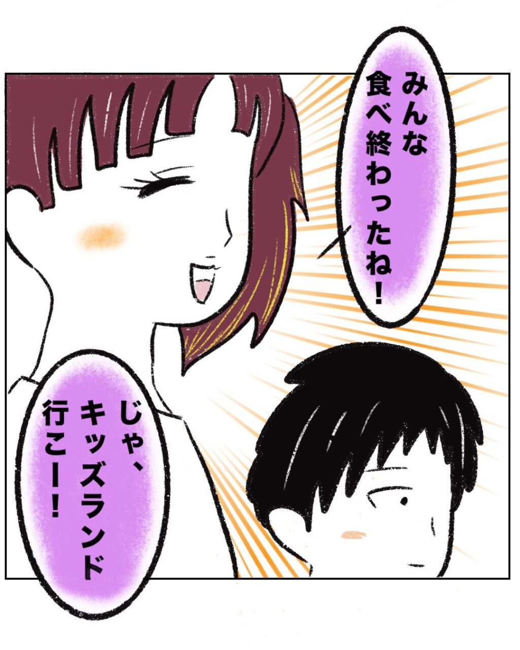 すると、「みんな食べ終わったね!じゃ、キッズランド行こー!」とつーくんママが言いました。