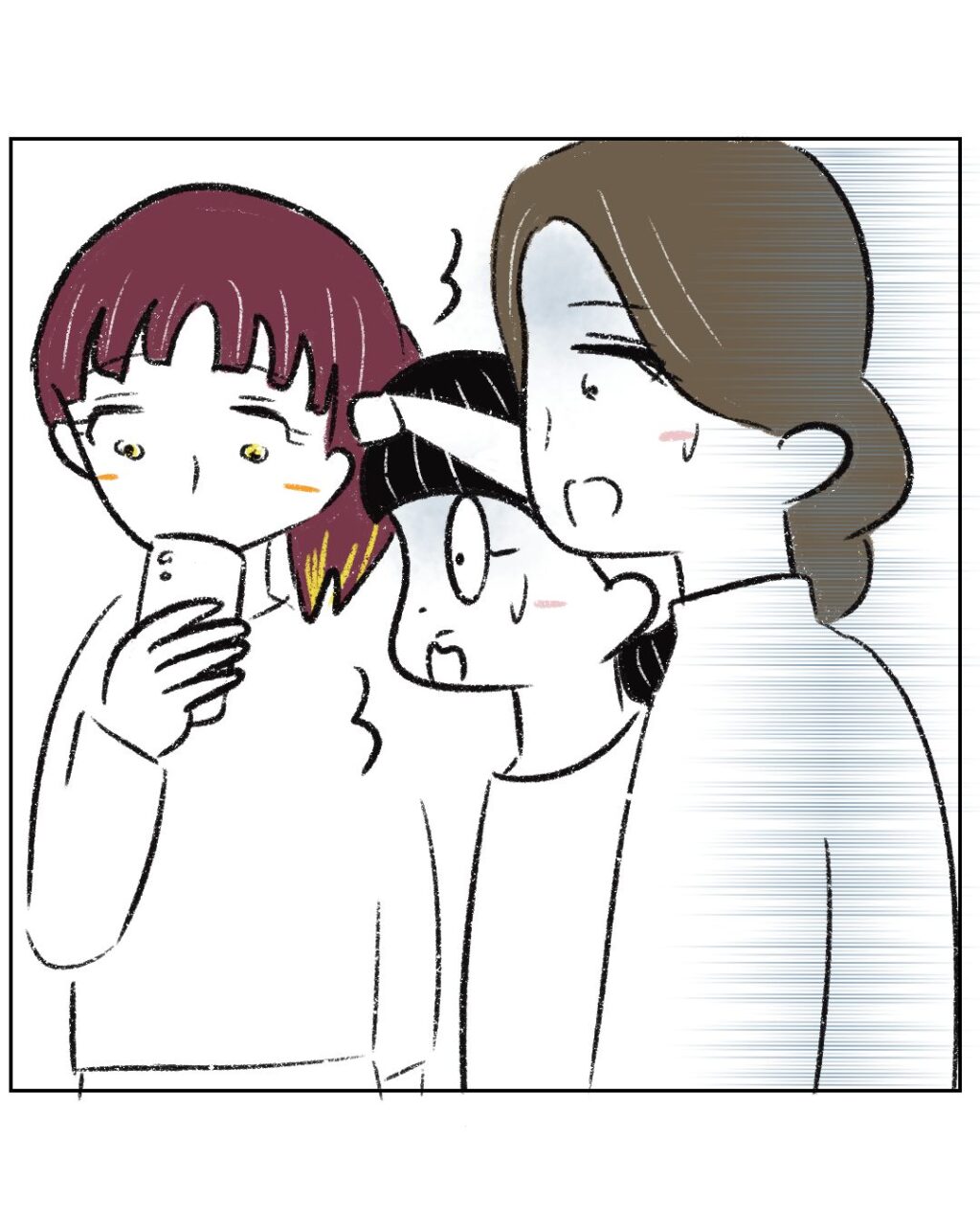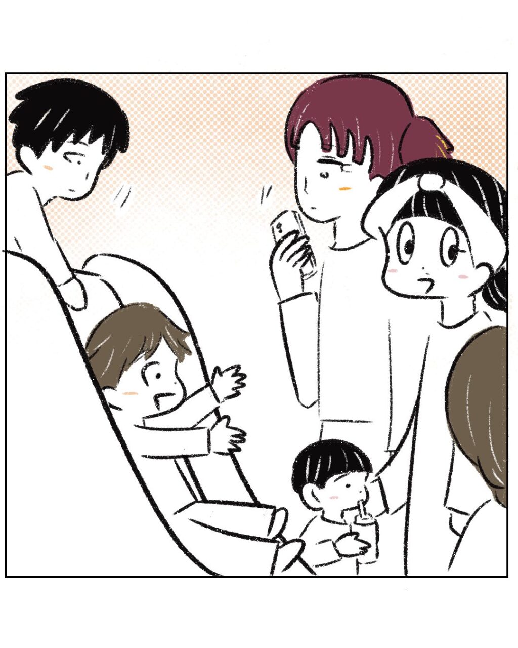 まーくんのハンカチをわざと落として拾ってあげたふりをするつーくん。目撃していたまるさんがどうやって伝えるべきかと迷っているうちにキッズランドへ行くことに。すっかりタイミングを失ってしまい後悔するまるさん。その後、子ども達が遊んでいるのを見守っていると、まーくんが滑り台に。すぐその上にいたつーくんが、突然まーくんの頭をげんこつで叩いたのを見て、まるさんとまーくんママはビックリ!スマホを触っていて何も見ていないつーくんママ、実際に見ていないと、なかなか真実を受け入れてくれなさそうですよね。