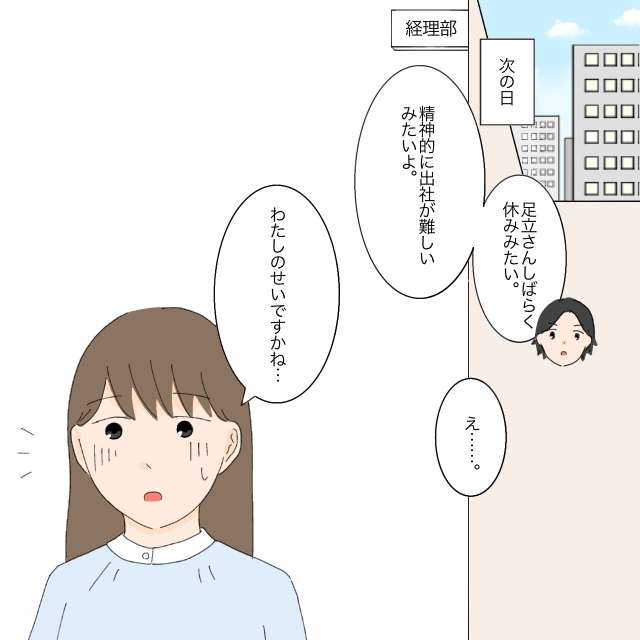「足立さん、しばらく休みみたい。精神的に出社が難しいみたいよ」ともか先輩の言葉に「え・・わたしのせいですかね・・」と驚きながらそう言うと、