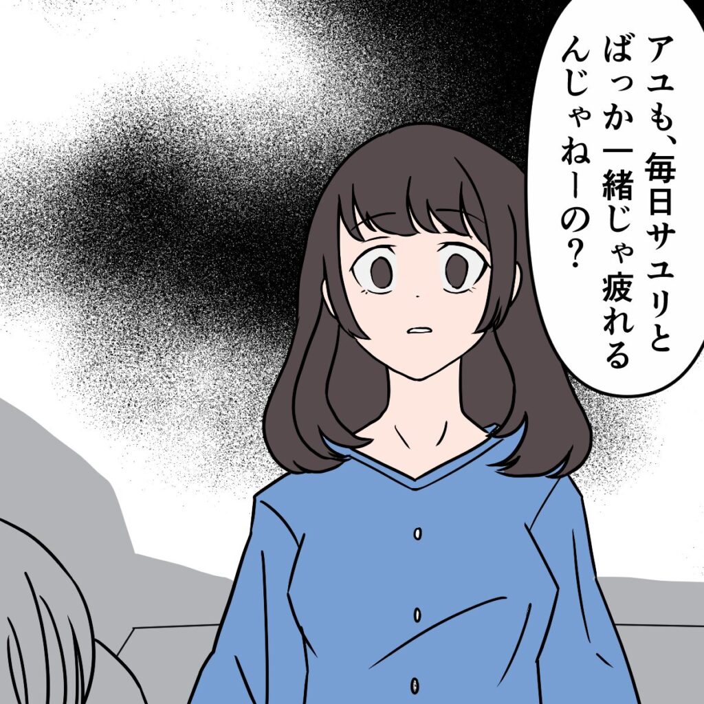 「アユも、毎日サユリとばっか一緒じゃ疲れるんじゃねーの?」と、サユリを誘いたい一心で言いました。サユリは珍しくその言葉に少し顔色を変えました。
