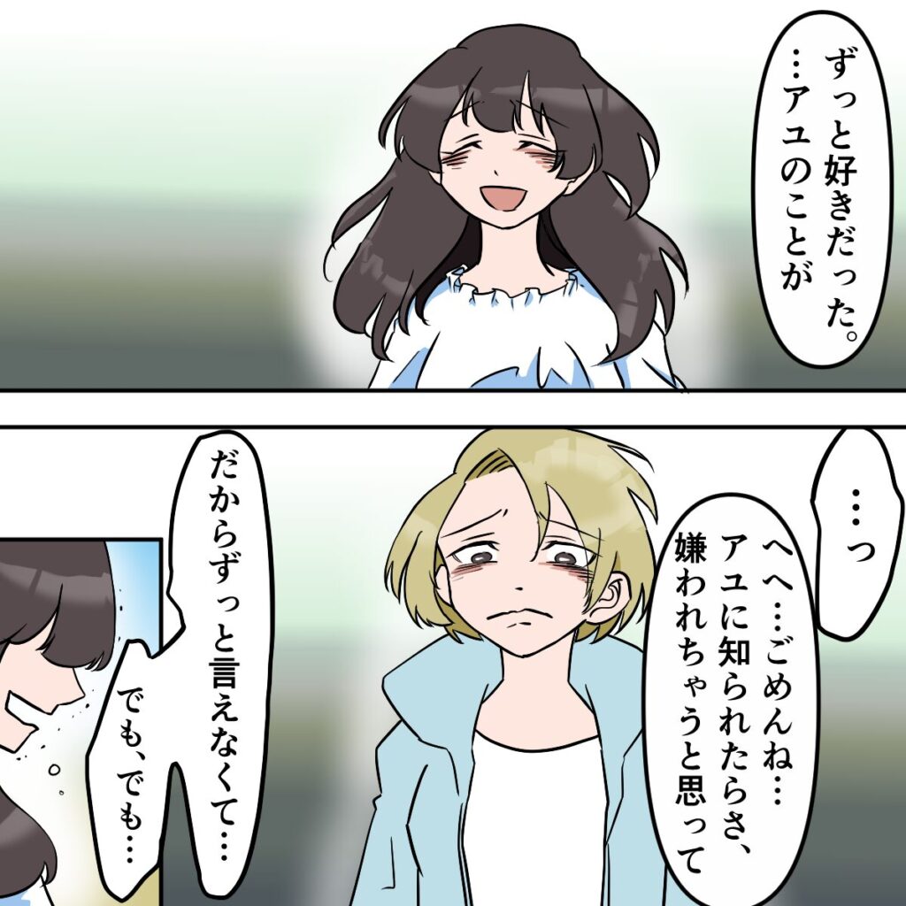 「ずっと好きだった。・・アユもことが。へへ・・ごめんね・・アユに知られたらさ、嫌われちゃうと思って、だからずっと言えなくて・・でも、でも・・」サユリの声がどんどん震えてきたかと思うと、
