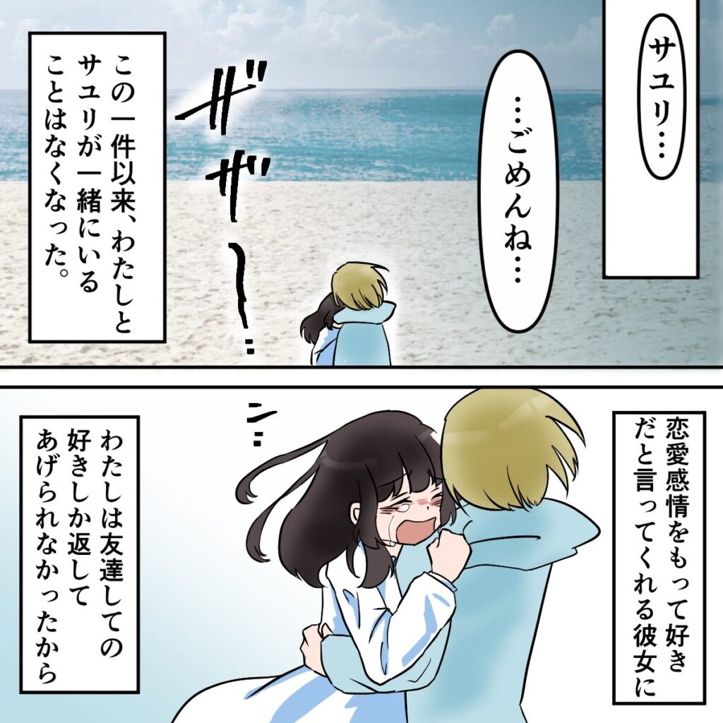 このことがあってから、わたしとサユリが一緒にいることはなくなりました。恋愛感情をもって好きだと言ってくれるサユリに、わたしは友達としての好きしか返してあげられなかったから。