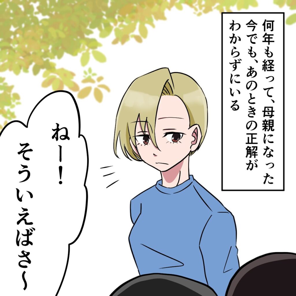それから何年も経ったある日のこと。母親になった私は、今でもあの時の正解がわからずにいました。