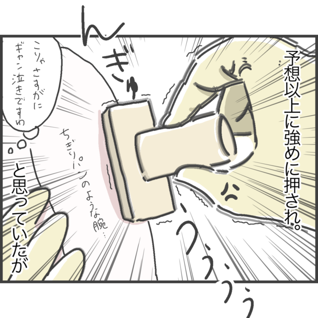 娘ちゃんが生後5ヶ月になりBCGワクチンの接種で保健センターへ行ったしおさん。予防接種といえば赤ちゃんたちは漏れなくギャン泣き・・・と思いきや?