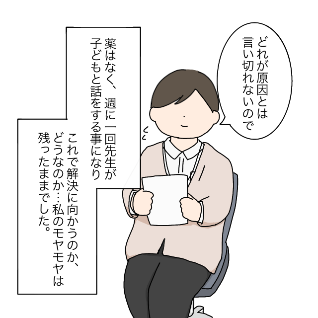 と、薬の処方はなく、週に1回先生が子どもと話をする事になったのですが、