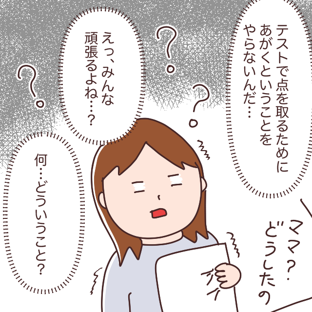 トウマには、テストで点を取るために「あがく」という発想そのものがなかったのです。普通なら、選択問題は分からなくても、みんな何かしら記入するもの。運が良ければ、3分の1の確率で正解できるかもしれないのに・・・。私には、息子が何を考えているのかまったく理解できませんでした。