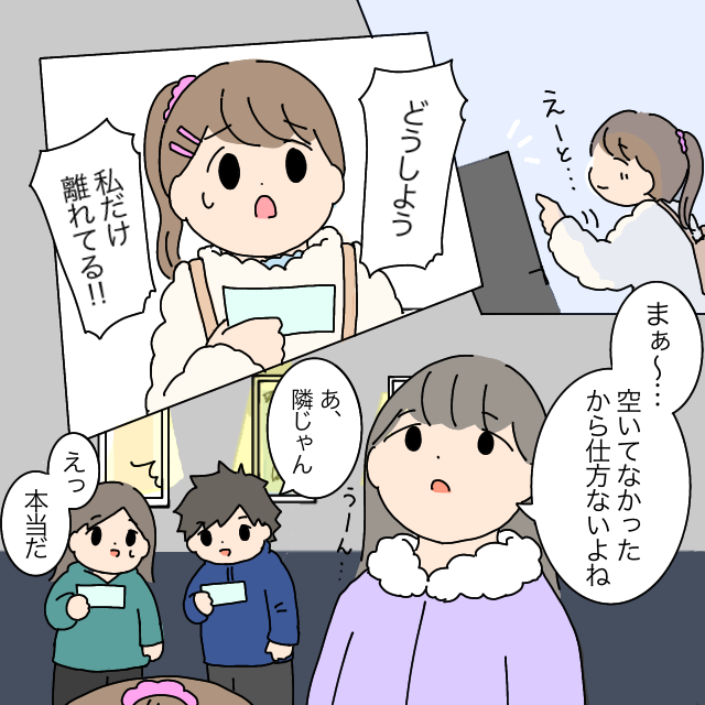 「どうしよう。私だけ離れてる!」