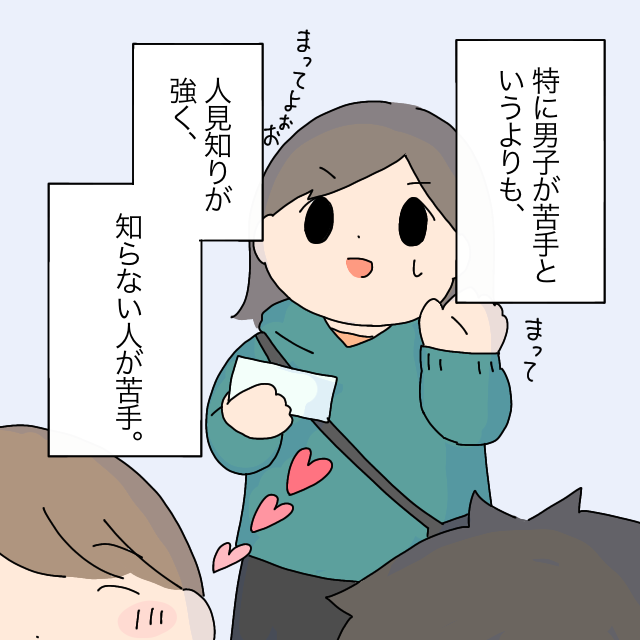 セリアちゃんにチケットを交換されて、ひとり離れた席で映画を観ることになってしまった娘は、特に男子が苦手というよりも人見知りが強く、知らない人が苦手なのです。
