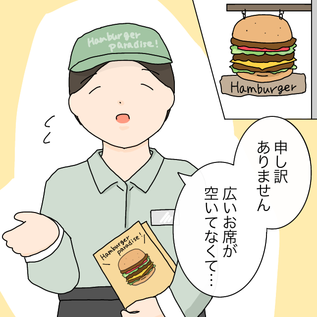 昼食に言ったのはハンバーガーショップ。広い席が空いていなかったので、二手に分かれる事にしたのですが・・・。