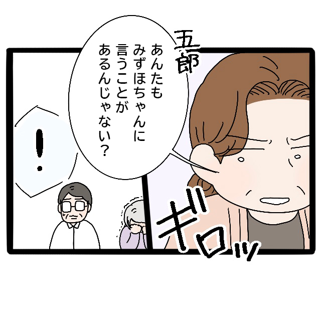 「五郎、あんたもみずほちゃんに言うことがあるんじゃない?」とお父さんをギロっと睨みつけると、