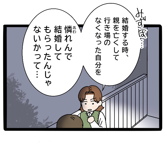 「みずほは・・結婚する時、親を亡くして行き場のなくなった自分を憐れんで結婚してもらったんじゃないかって・・」