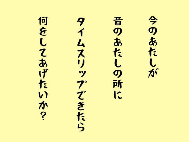 今のあたしが、昔のあたしの所にタイムスリップできたら何をしてあげたいか?
