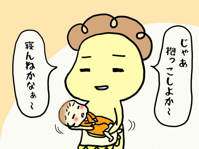 「じゃあ抱っこしよか~。寝んねかなぁ~」