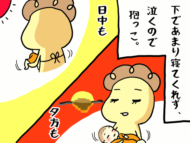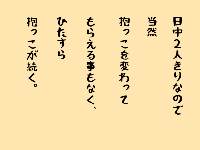 日中2人きりなので当然抱っこを代わってもらえる事もなく、ひたすら抱っこが続く。