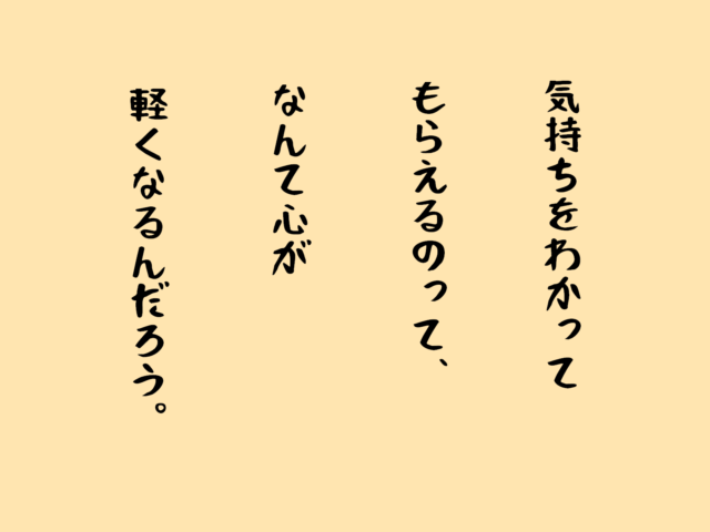 気持ちをわかってもらえるのって、なんて心が軽くなるんだろう。