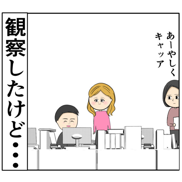 良し男さんとふり子さんの関係を疑っているマキさんは、お昼休憩になったときに2人が一緒にいたことで「2人でお昼に行くのか!?」と怪しんでいました。休憩から戻ってきた同僚の村上さんに、良し男さんと一緒だったか確認すると一人だったと聞き「やっぱり2人で!?」と疑惑を深め・・・ふり子さんの行動に注意しようと改めて強く思うマキさんでした・・・。