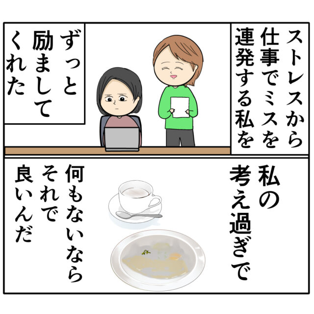 すみれさんは、マキさんがストレスから仕事でミスを連発していた時にずっと励ましてくれたのです。