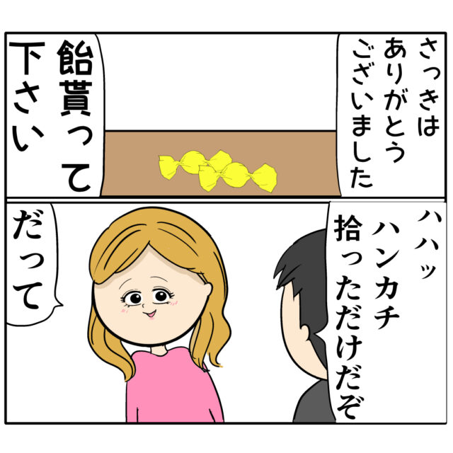 と、ハンカチを拾っただけの良し男さんに笑顔を振りまくのでした。